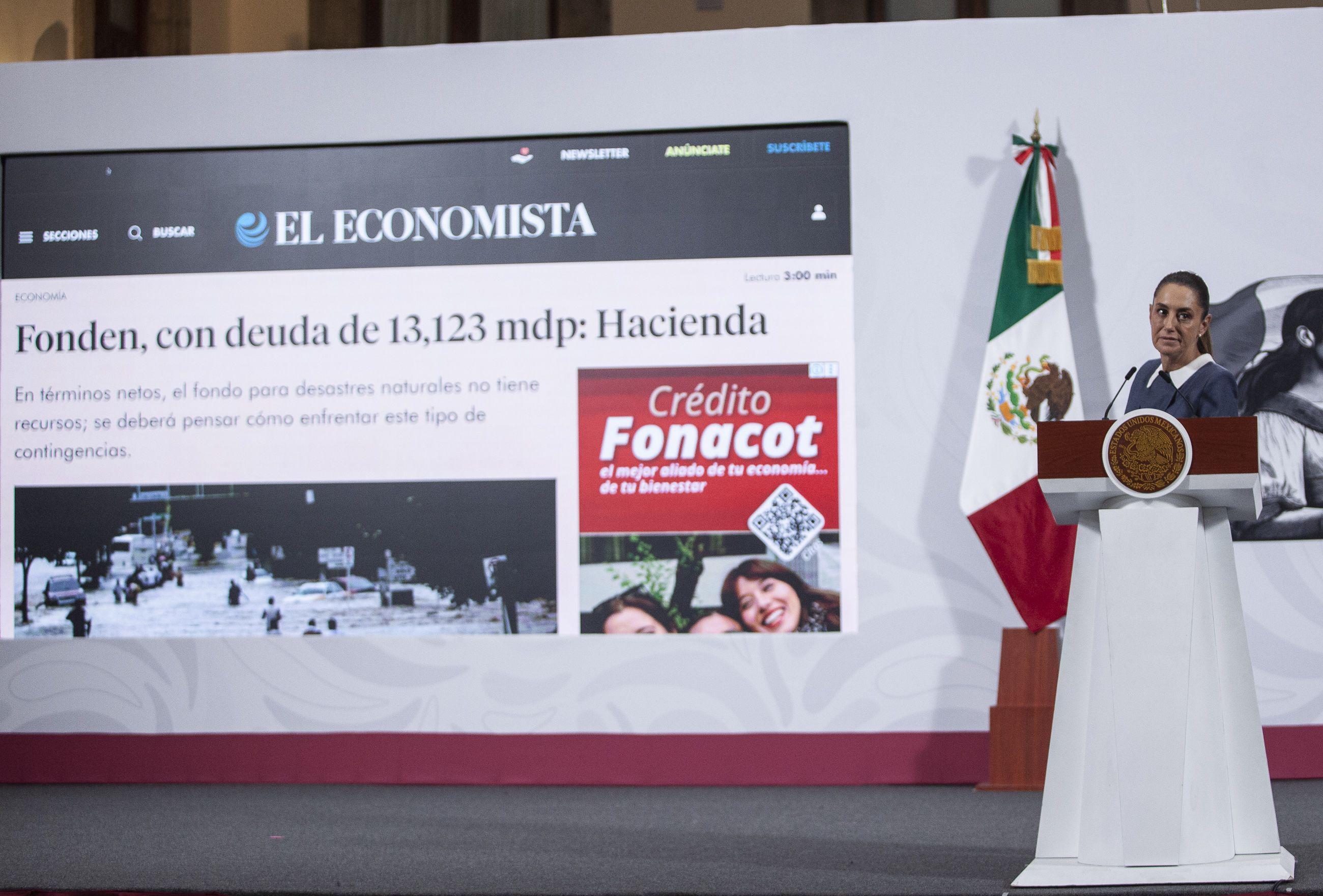 Durante la conferencia matutina, la mandataria defendió la decisión de eliminar el Fideicomiso Fondo de Desastres Naturales (Fonden) en 2021, señalando que al asumir la presidencia, el gobierno de Andrés Manuel López Obrador recibió el fideicomiso con una deuda superior a 13 mil millones de pesos.