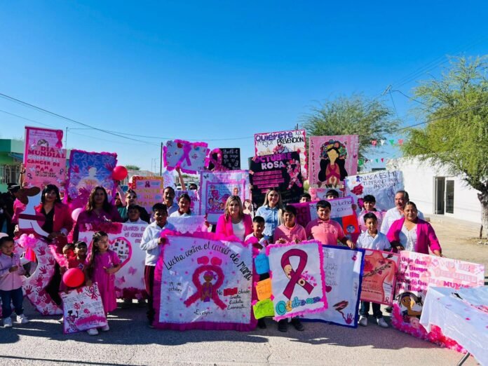 En un firme esfuerzo por fomentar la prevención y la detección oportuna del cáncer de mama, la alcaldesa de Ocampo, Adriana Valdéz, encabezó una caminata de concientización en el ejido Chulavista. Esta actividad se enmarca en las acciones de sensibilización que se realizan durante el mes de la lucha contra esta enfermedad.