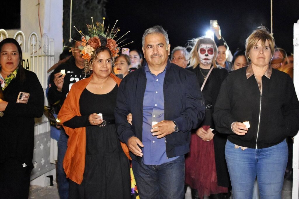 La velada contó con la distinguida presencia del Alcalde, Ing. Víctor Manuel Leija Vega, y la Presidenta Honoraria del DIF, Sra. Leticia Medina. Ambos, junto a otras autoridades municipales, acompañaron a las decenas de familias que se sumaron con respeto y orgullo a este encuentro entre la vida y la memoria.
