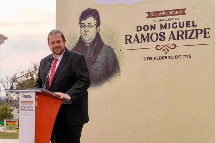 Ramos Arizpe, Coahuila, 15 de febrero de 2025.- El Gobierno Municipal de Ramos Arizpe, encabezado por el alcalde Tomás Gutiérrez Merino, llevó a cabo una ceremonia cívica para conmemorar el 250 aniversario del natalicio de Don Miguel Ramos Arizpe, considerado el padre del federalismo mexicano.