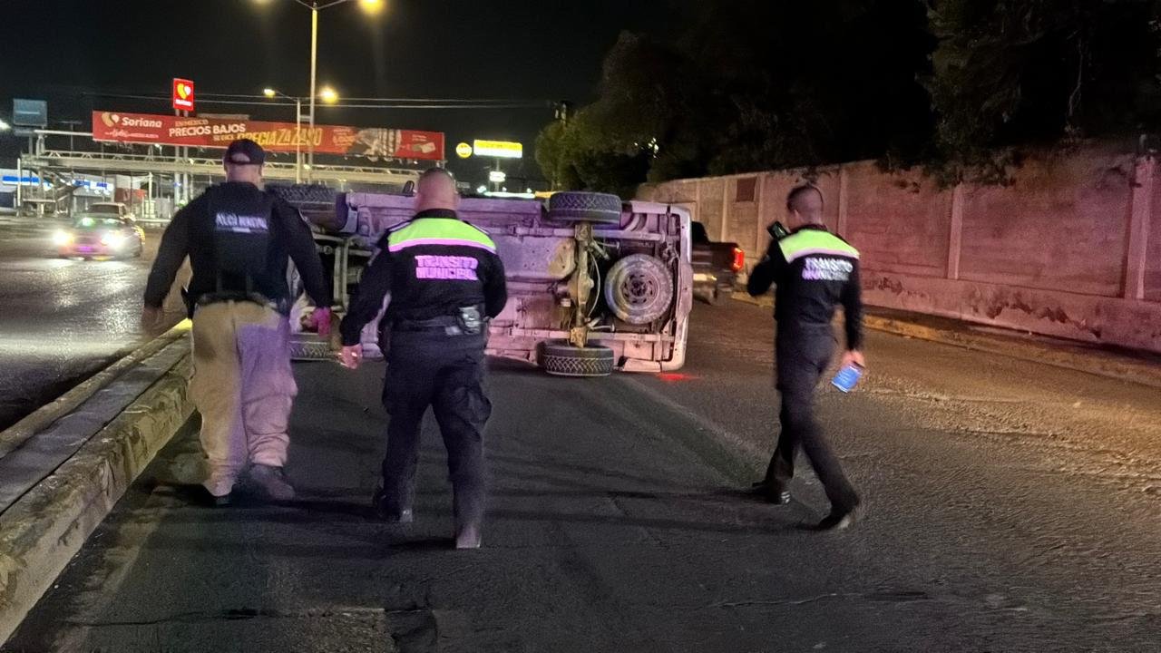 En la intersección con la avenida 7, presuntamente se impactó contra el camellón central, lo que ocasionó que la camioneta se volcara y quedara sobre su costado derecho. Afortunadamente, el conductor logró salir por su propia cuenta para posteriormente huir con rumbo desconocido.
