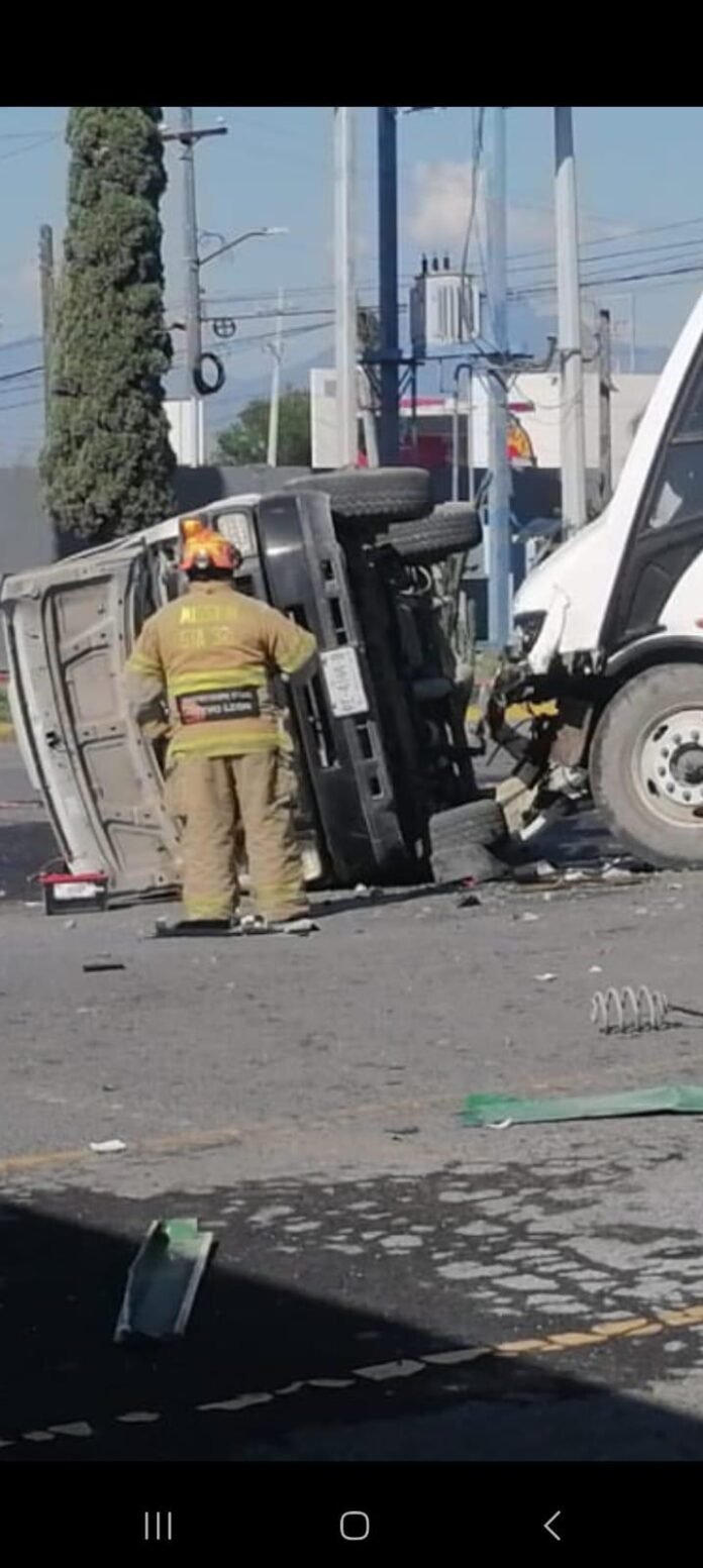 Los vehículos involucrados en los hechos son una unidad de transporte de personal de la empresa HMD, un Tsuru en color azul, un Chevy rojo y una camioneta Ford blanca.
