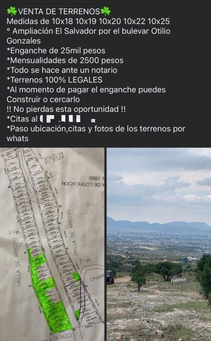 Las direcciones de Desarrollo Urbano y Catastro del Municipio de Saltillo confirmaron que los terrenos ofrecidos como parte de la colonia “Ampliación El Salvador”, al oriente de la ciudad, son irregulares para uso habitacional y se ubican dentro de la zona natural protegida de la Sierra Zapalinamé.