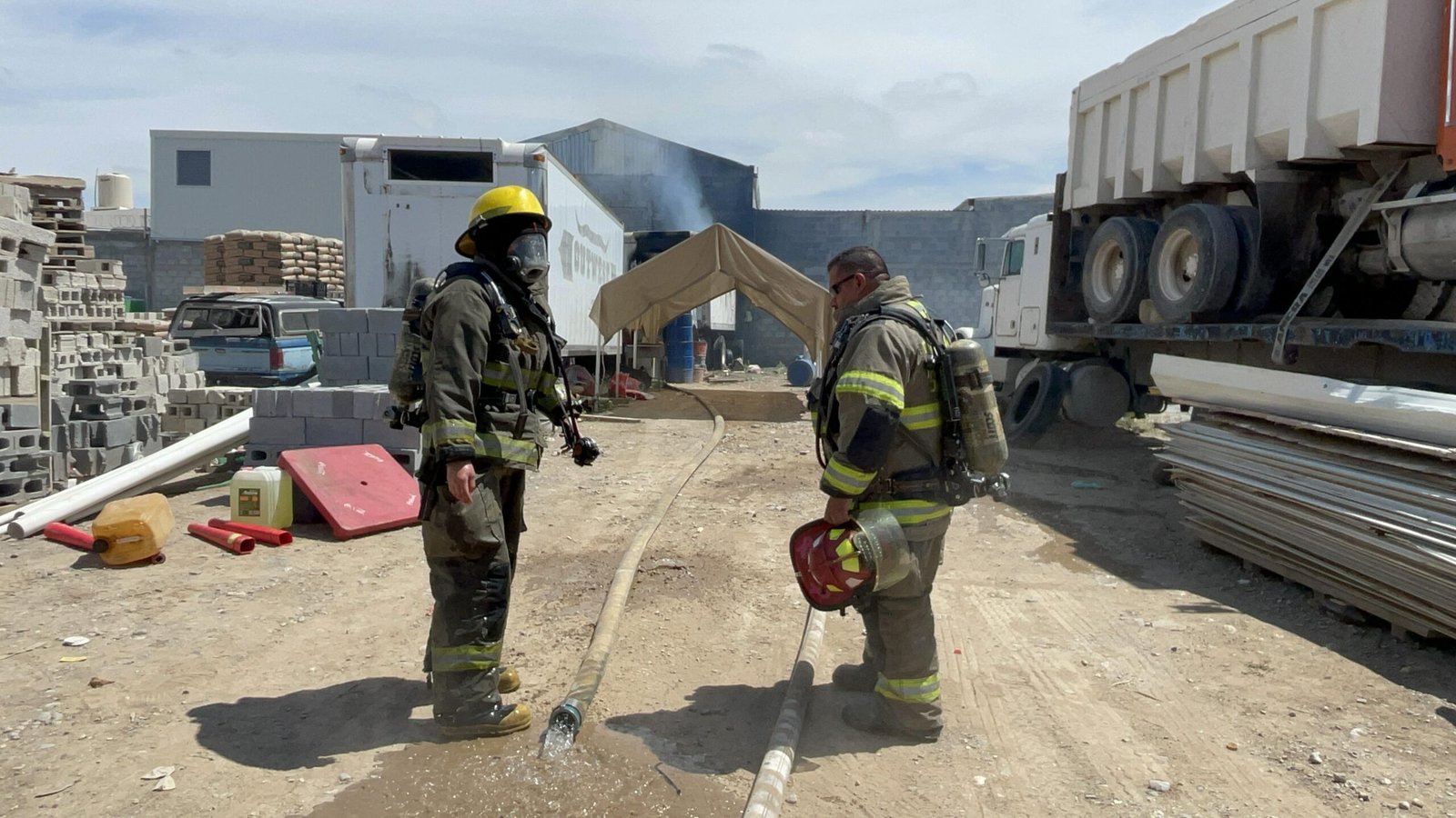 Elementos del Cuerpo de Bomberos de la estación Morelos acudieron tras recibir el reporte al número de emergencias 911. En cuestión de minutos llegaron al lugar, ubicado en la parte trasera de una bodega donde se encontraban varios vehículos y material de construcción, incluido el tráiler afectado.