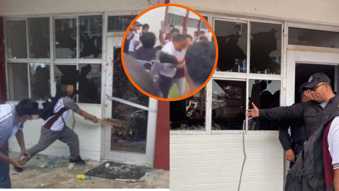 El momento más crítico ocurrió cuando el director fue confrontado directamente por los inconformes. Tras caer al suelo, recibió golpes, patadas y objetos arrojados por los jóvenes.
