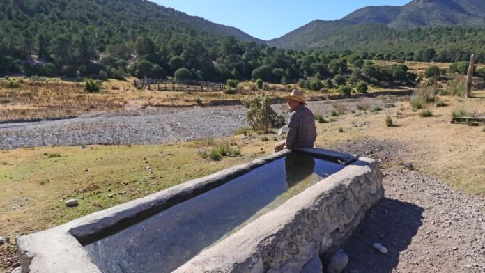 “Mire… fresquecita y bien sabrosa”, oigo que suelta don Ángel Torres al tiempo que gira la manija de la llave, y el agua, con que se llena el bebedero para que tomen las escasas vacas que aún pastan por el ejido, escapa a borbotones cristalinos.