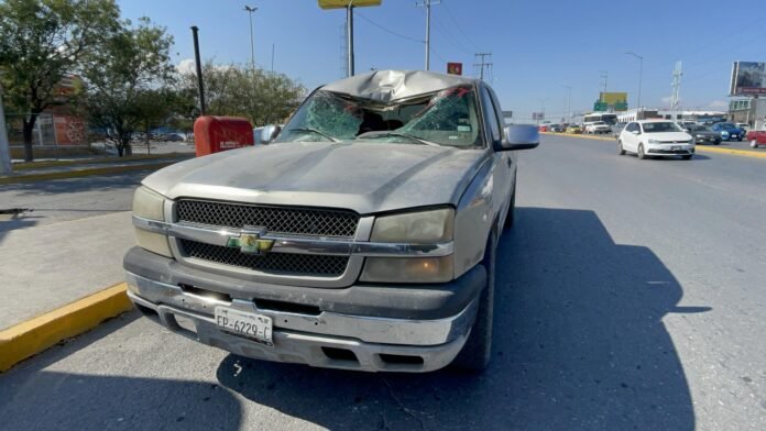 El neumático impactó contra el frente de una camioneta Chevrolet 1500. El conductor de esta unidad logró controlar el vehículo y detenerse de manera gradual, aunque el golpe ocasionó daños considerables: el parabrisas y parte del techo resultaron destruidos. Además, el conductor presentó una lesión en el brazo derecho, por lo que fue valorado por personal de la Cruz Roja que se encontraba en el lugar.
