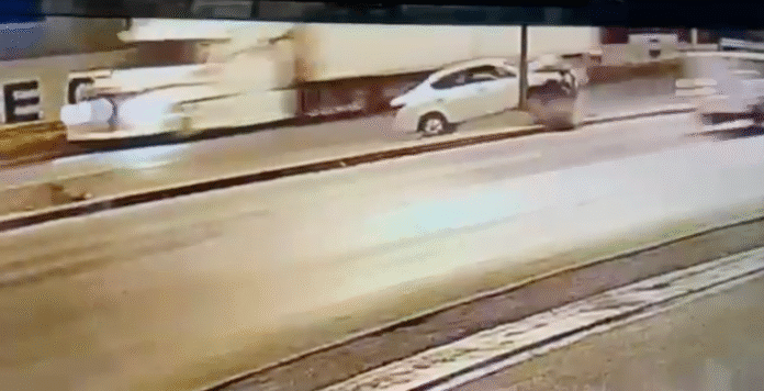 De acuerdo con testigos, el tráiler impactó por alcance al vehículo, arrastrándolo varios metros y proyectándolo contra una base eléctrica, lo que provocó severos daños materiales y dejó al conductor del taxi en estado delicado de salud.