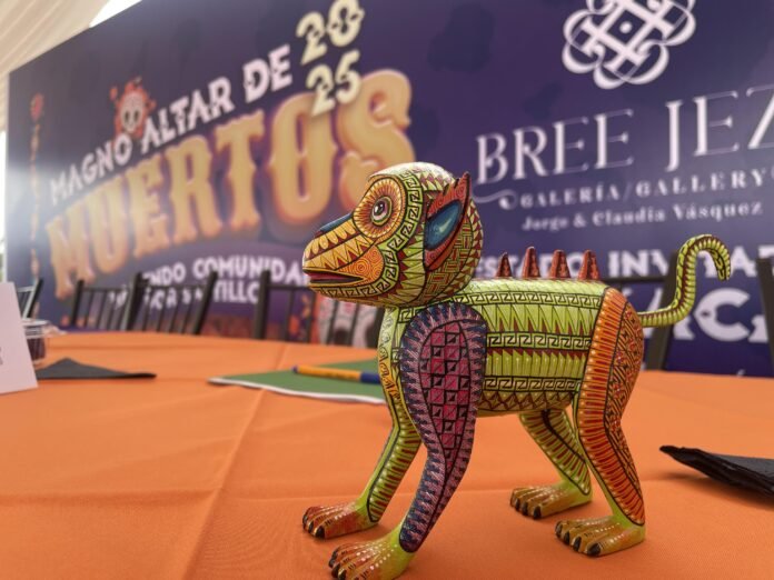 “En Oaxaca trabajamos desde la cultura zapoteca, nuestro pueblo es San Martín Tilcajete, donde existe una historia sobre los tonas y nahuales, que son nuestros animalitos que nos protegen durante toda la vida y en la reencarnación. Aparte de ser piezas de arte es una ofrenda también para el altar, se utiliza el arte como ofrenda”, explicó Jorge Vásquez, socio de la galería, durante la rueda de prensa que se llevó a cabo este jueves y en la que se dieron a conocer los pormenores del Magno Altar.