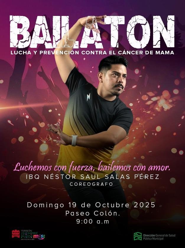 TORREÓN, COAH.- En el marco del Día Mundial de la Lucha contra el Cáncer de Mama, la Dirección de Salud Pública Municipal invita a las mujeres torreonenses a participar en el Gran Bailatón, un evento que combina ejercicio, convivencia y conciencia sobre la prevención de esta enfermedad.
