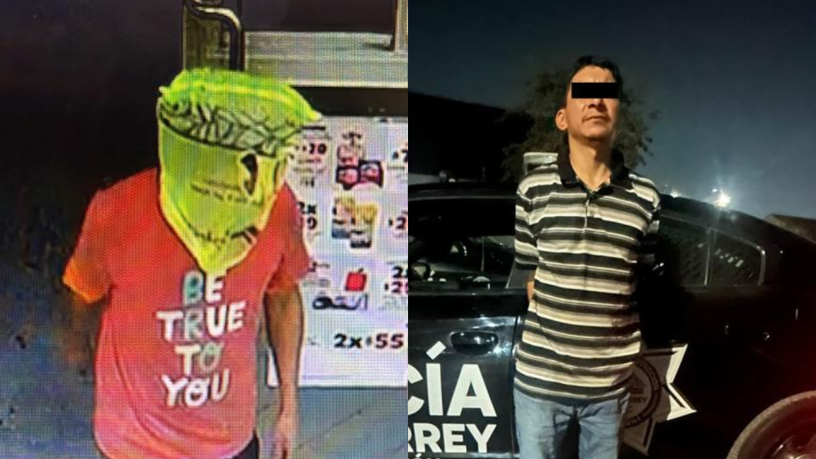 Monterrey, Nuevo León.- Un hombre, de 37 años, fue detenido por elementos de la policía de Monterrey acusado de cometer una serie de robos a tiendas de conveniencia con el rostro cubierto con !una bolsa de plástico!