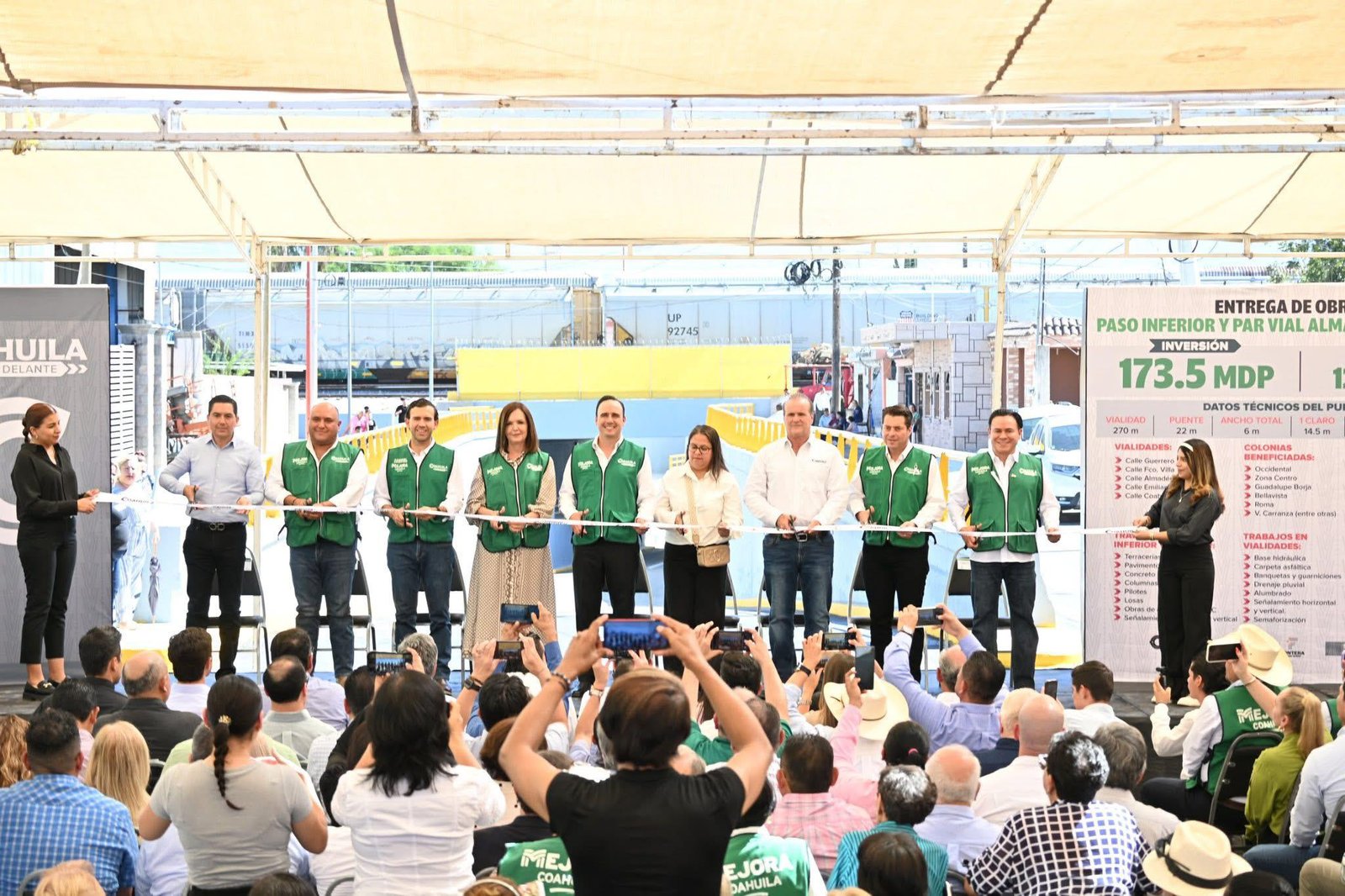 Con una inversión de 173.5 millones de pesos, el gobernador Manolo Jiménez Salinas y la alcaldesa Sara Irma Pérez Cantú inauguraron el Paso Inferior Vehicular y el Par Vial Almadén en el municipio de Frontera, obras que buscan agilizar la movilidad urbana y mejorar la conectividad en la ciudad del riel.
