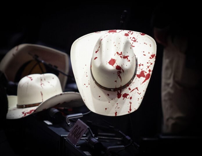 Legisladores del PRI llegaron al Pleno con sombreros blancos manchados de pintura roja, simulando sangre, en referencia al característico sombrero que usaba el edil independiente que fue ejecutado.