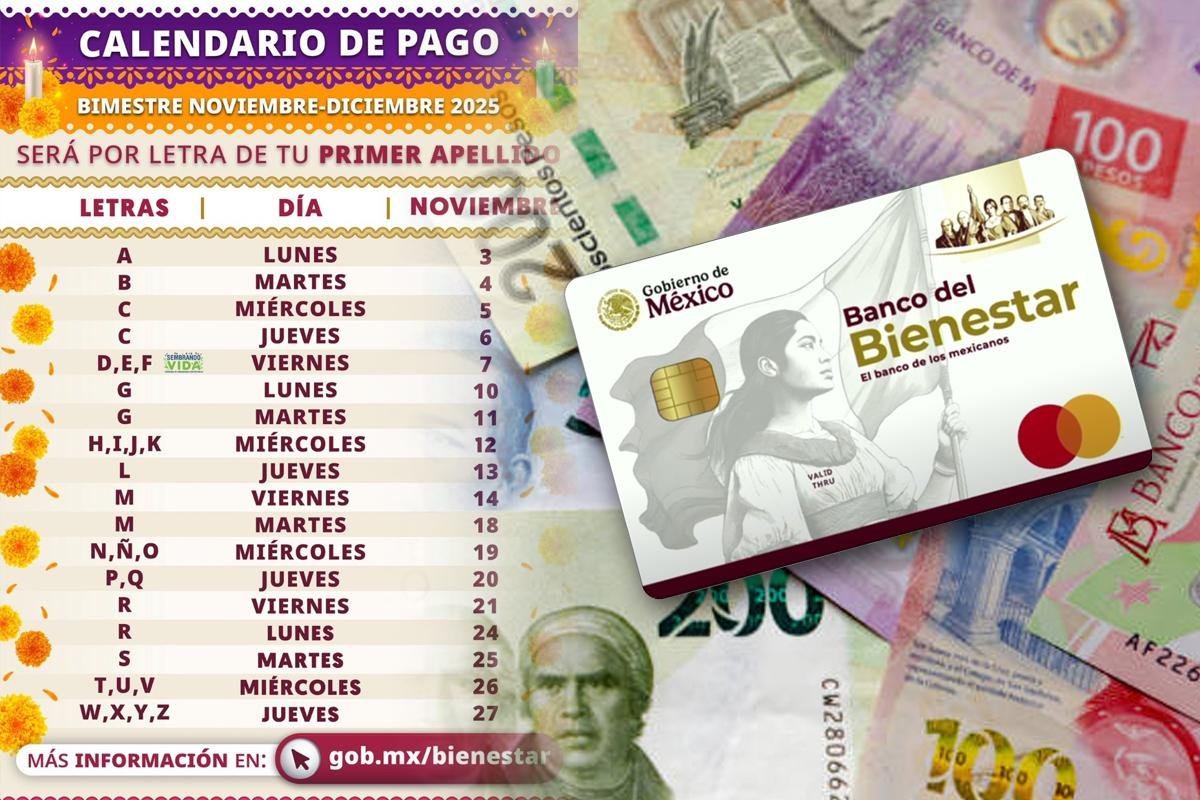 De acuerdo con el calendario oficial publicado en la página de la Secretaría del Bienestar, fue el pasado lunes 3 de noviembre que se comenzarán a dar los pagos del periodo que abarca el bimestre noviembre- diciembre de 2025, el último pago del año.