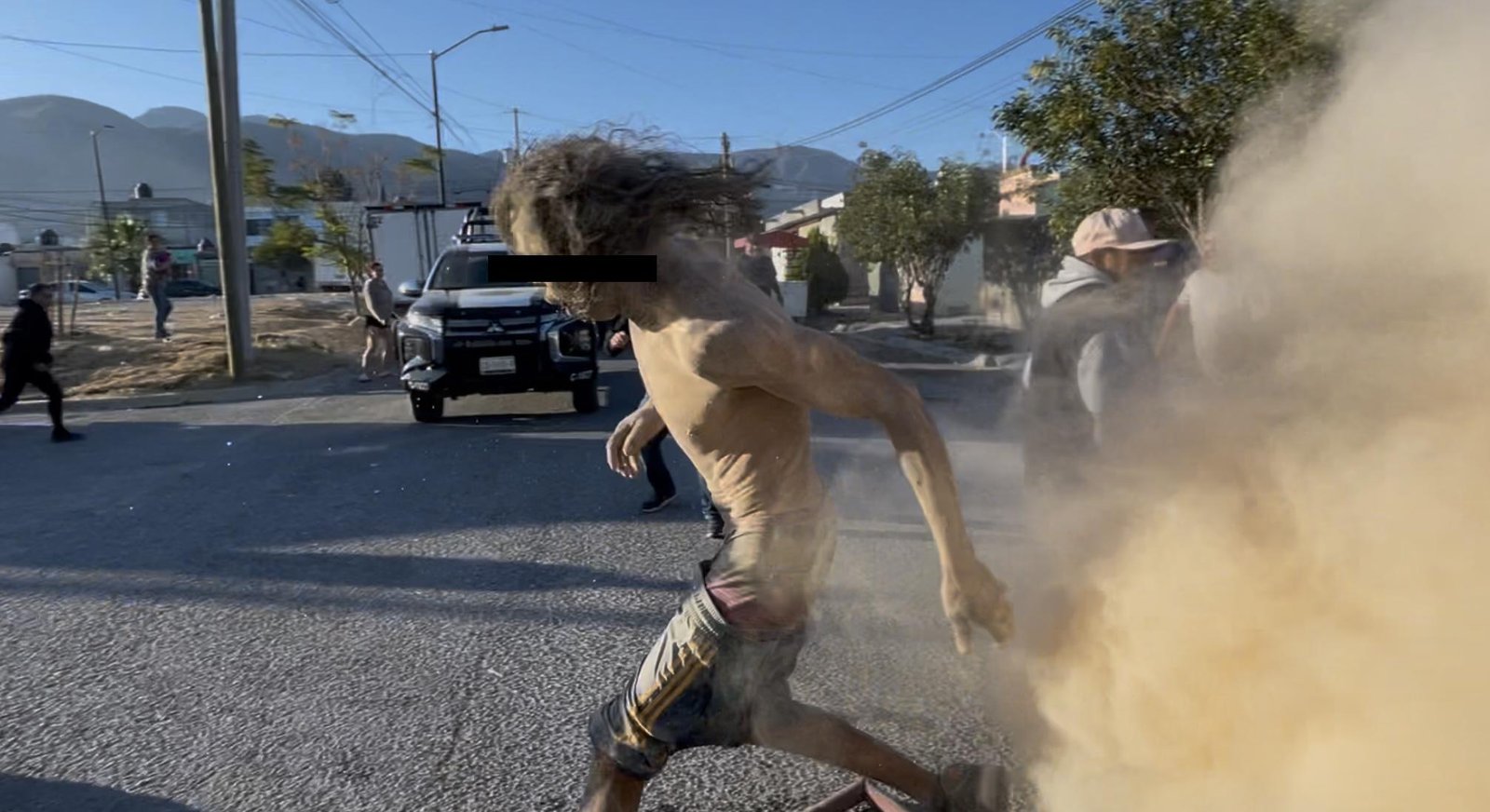 Bomberos intentaron desarmarlo utilizando la presión del agua de las mangueras para que soltara el machete, pero esto no funcionó. Fue hasta que intentó escapar del lugar cuando lograron neutralizarlo arrojándole el polvo de un extintor.