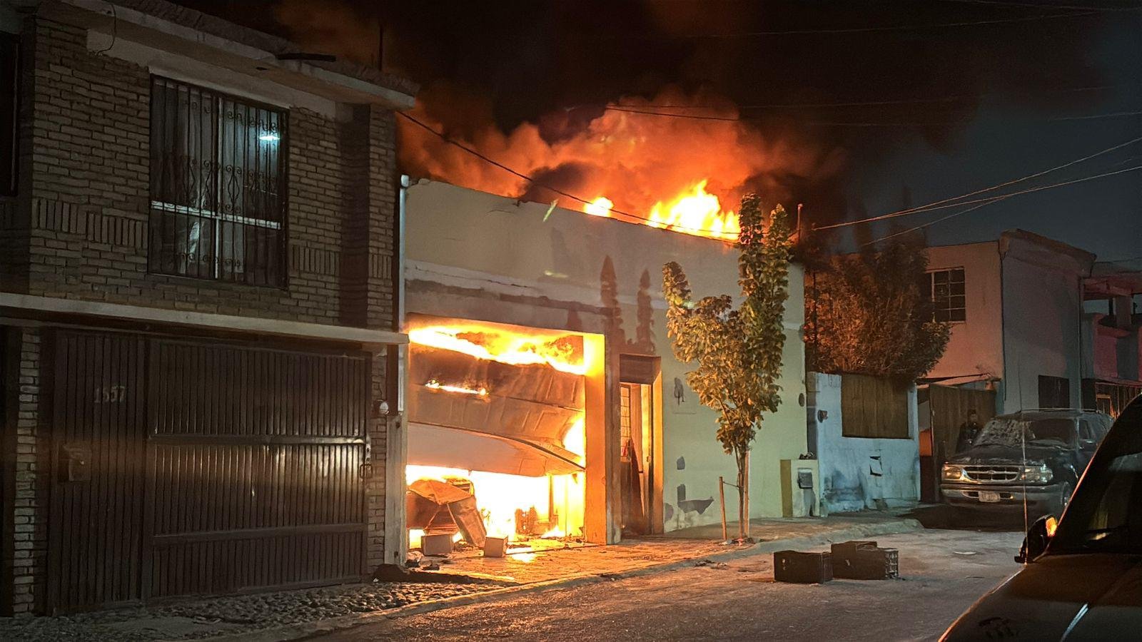 Un domicilio, que funcionaba como paletearía y nevaría, terminó envuelto en llamas tras un presunto cortocircuito en el área de los cuartos fríos, en la colonia Omega, en Saltillo.