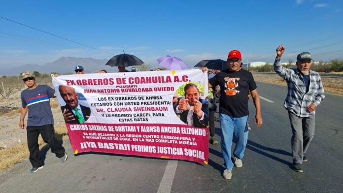Ex trabajadores de AHMSA desafían edad y enfermedades en marcha hacia Saltillo (video)