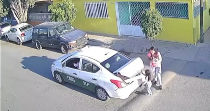 El incidente fue captado por cámaras de seguridad y generó indignación en redes sociales. El video muestra cómo el taxi marcado con el número económico 1890 efectúa el atraco ante el desconcierto de la familia.