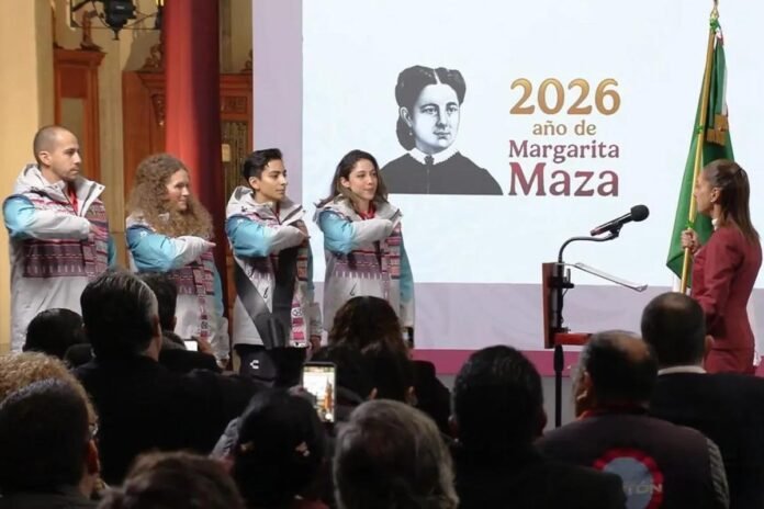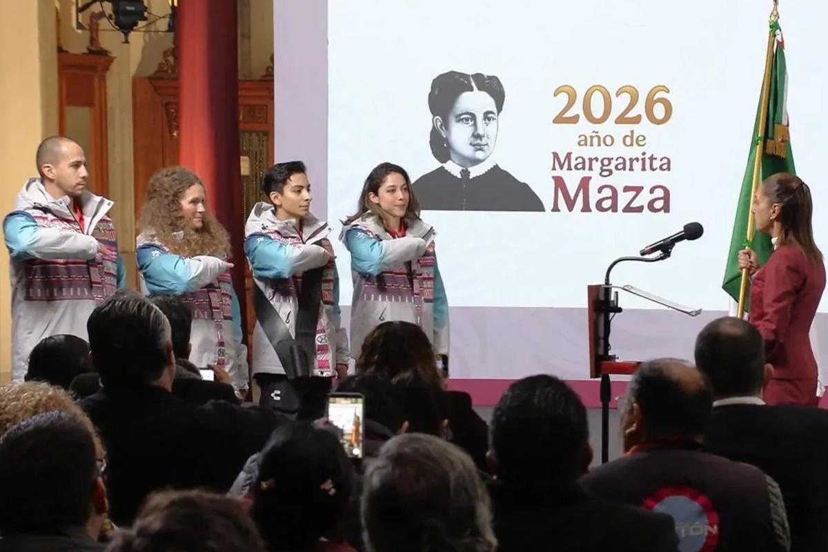 En un evento protocolario celebrado en Palacio Nacional, la presidenta Claudia Sheinbaum Pardo entregó la bandera nacional a la delegación que viajará a Italia para competir en los Juegos Olímpicos de Invierno 2026. Durante su mensaje, deseó “suerte” a las y los deportistas, destacando el orgullo que representa portar los colores de México en una justa internacional.