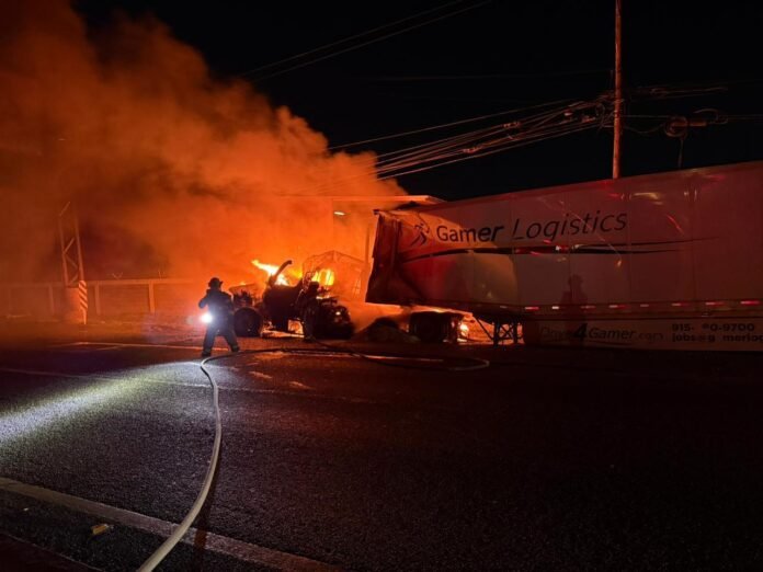 Elementos de Protección Civil del estado confirmaron que se trató del incendio de un tractocamión de la compañía Gamer Logistic.