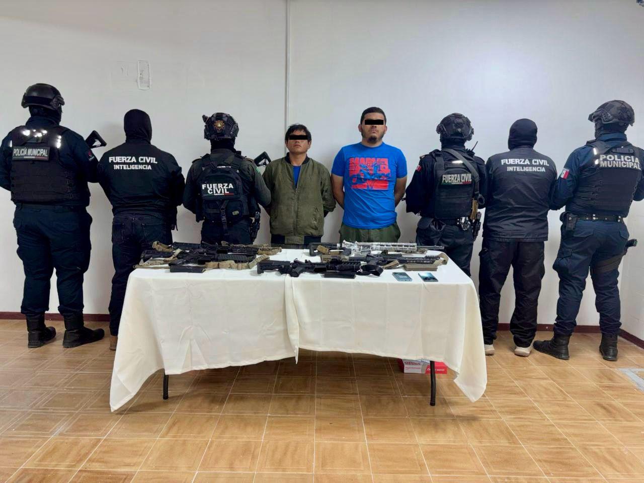Monterrey, Nuevo León.- Dos hombres que son señalados como generadores de violencia fueron detenidos en posesión de un arsenal a bordo de un vehículo tipo taxi, en Nuevo León.