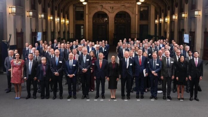 La presidenta Claudia Sheinbaum recibió en Palacio Nacional a una delegación empresarial integrada por más de 100 directivos provenientes de Dinamarca, Finlandia, Noruega y Suecia, en lo que fue catalogado como la primera misión empresarial nórdica en México.