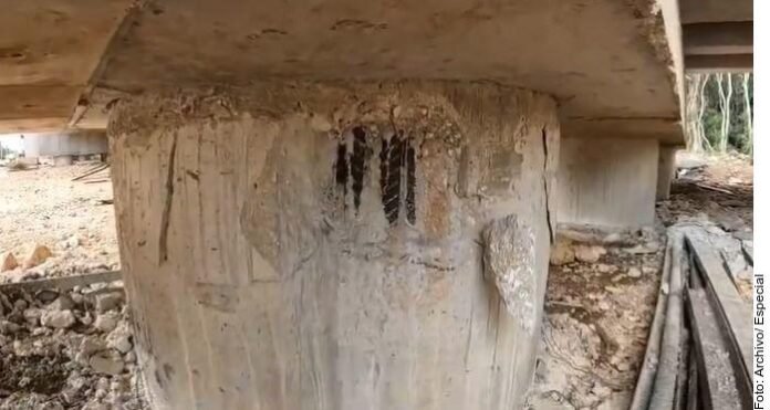 La organización ambientalista Sélvame del Tren exhibió hundimientos en los pilotes colocados en cenotes y cavernas del Tramo 5 del Tren Maya, entre Cancún y Tulum.