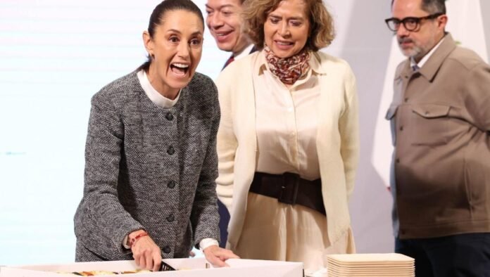Al final de su conferencia matutina, la mandataria compartió este emblemático momento con funcionarios, integrantes de la prensa y medios de comunicación presentes, marcando una jornada que combinó tradición y gobernanza.