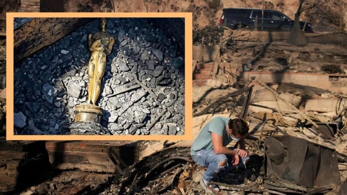 En redes sociales comenzó a circular la fotografía de una supuesta estatuilla de un premio Oscar el cual ‘sobresalía’ de entre los escombros y restos de una casa incendiada en Los Ángeles.