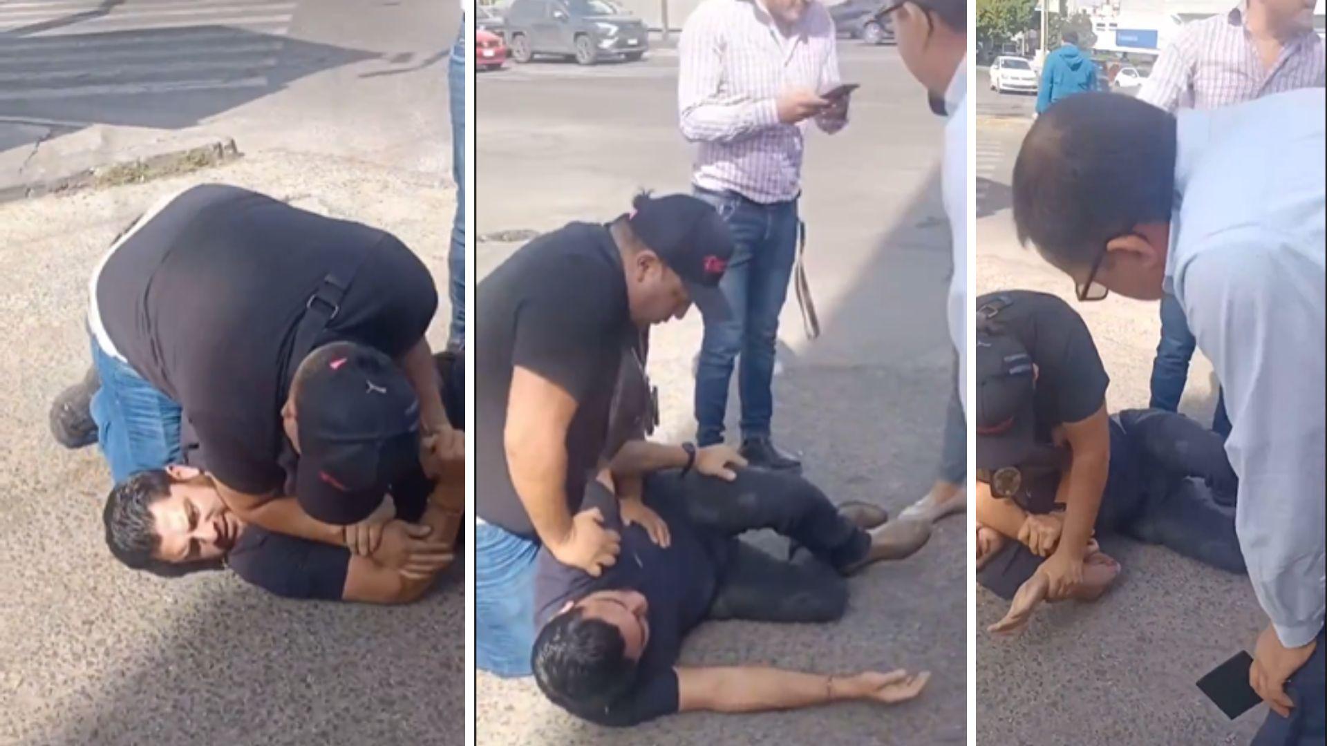 En el material gráfico compartido, correspondiente a la fecha del 16 de enero en el Boulevard Mártires del 2 de octubre, se observa cómo los agentes someten al sujeto, identificado como Javier ‘N’, mientras él pide que no lo ahorquen y asegura que no cuenta con órdenes de aprehensión en su contra.