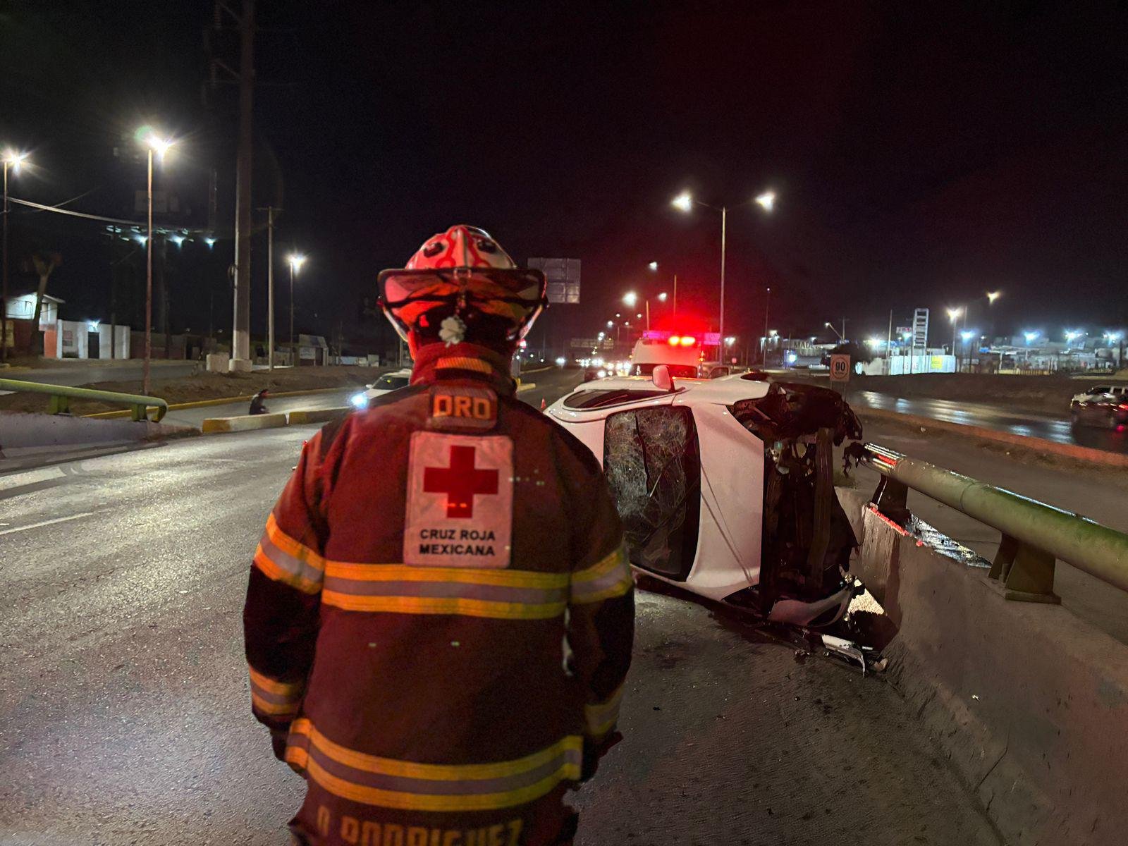 Al recibir la llamada de emergencia, elementos de Tránsito Municipal llegaron al lugar para tomar conocimiento del percance y abanderar la zona para evitar otro posible accidente. A pesar de lo aparatoso del incidente, el conductor solo presentó un fuerte golpe en la nariz, por lo que fue atendido en el lugar por paramédicos de la Cruz Roja. Posteriormente, fue trasladado al Hospital General para su valoración médica.