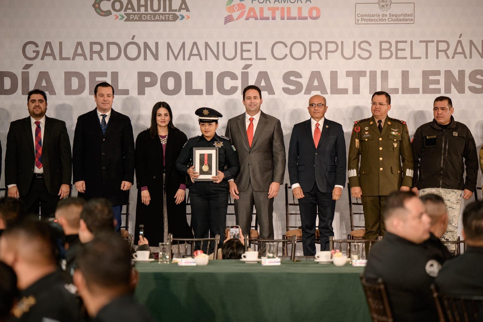 En un acto que destacó el compromiso con la seguridad ciudadana, el alcalde de Saltillo, Javier Díaz González, entregó el Galardón Manuel Corpus Beltrán al Mérito Policial y nuevos uniformes a los elementos de la Comisaría de Seguridad y Protección Ciudadana.