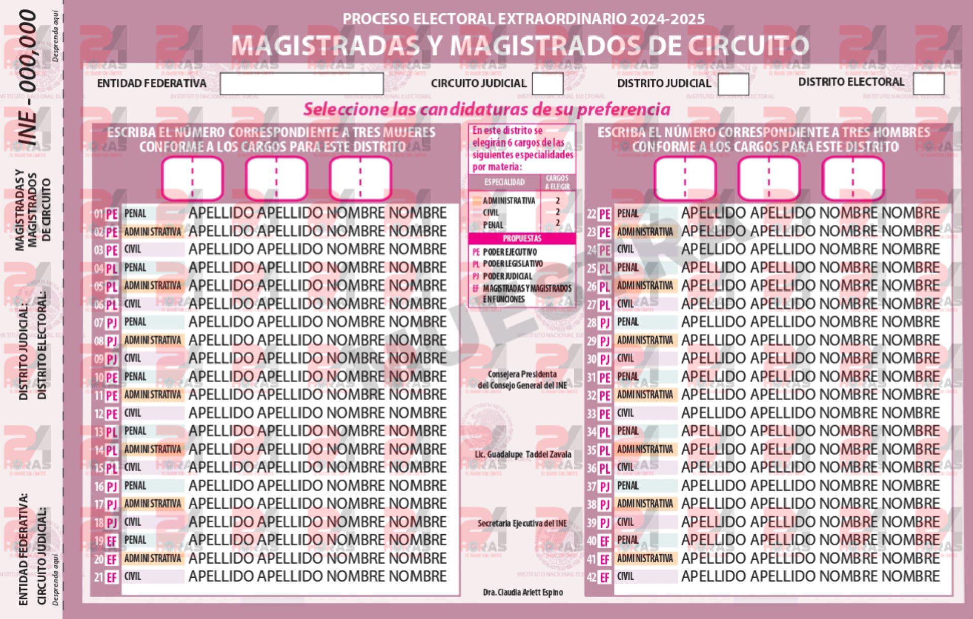 Consejeros del Instituto Nacional Electoral (INE) dieron su aval a las nuevas boletas que se usarán para la elección de jueces y magistrados, en las que ahora se especifica una descripción de los ramos por los que compiten.