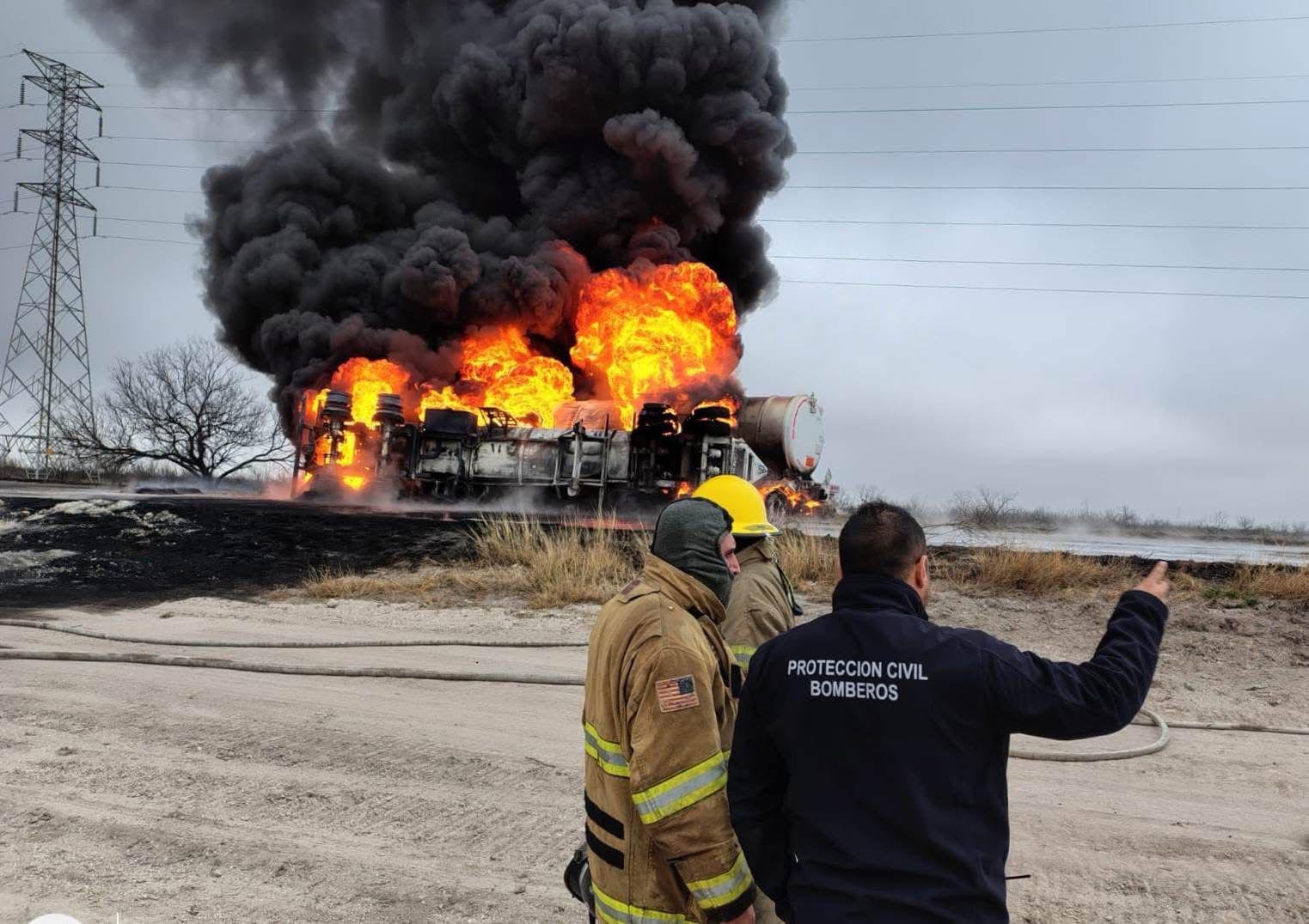 NAVA, COAH.- Una pipa que transportaba gasolina explotó por causas que aún se desconocen en un tramo federal de la Carretera 57, a la altura del rancho Santo Tomás, cercano a las carboeléctricas de la Comisión Federal de Electricidad (CFE), en el municipio de Nava.