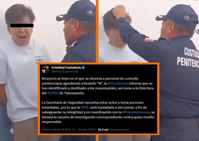 “Respecto al video en el que se observa a personal de custodia penitenciaria agrediendo a Rodolfo “N”, la @SS_Edomex informa que se han identificado y destituido a los responsables, así como a la Directora del #CPRS de Tlalnepantla”, se lee en un breve comunicado.