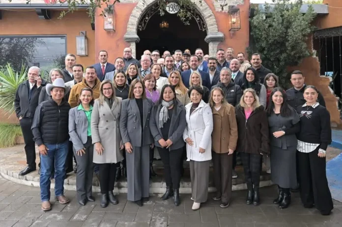 Monclova, Coahuila, 13 de enero de 2026.- Con el objetivo de fortalecer la coordinación institucional y brindar mayor certeza jurídica a las familias monclovenses, acorde con la visión y el trabajo en equipo con el gobernador Manolo Jiménez, el alcalde Carlos Villarreal participó en la reunión del Colegio de Notarios de Monclova, realizada con motivo del cambio de su Mesa Directiva.