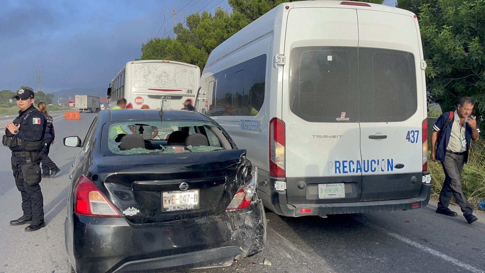 Posteriormente, la van impactó a un Chevrolet Aveo, que a su vez golpeó a un camión de transporte de personal de la empresa Lipu, también con destino a Derramadero y que trasladaba a varios trabajadores.