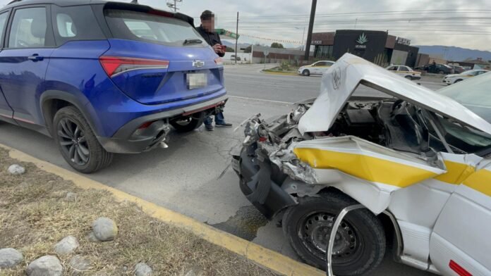 Este viernes por la mañana en Saltillo, se registró un accidente vial en el bulevar Venustiano Carranza, cerca de la rotonda en la salida a Monterrey, cuando un taxi impactó la parte trasera de una camioneta. El incidente, que involucró un Nissan Tsuru y una Chevrolet Captiva, dejó daños materiales, pero afortunadamente no se reportaron heridos graves.