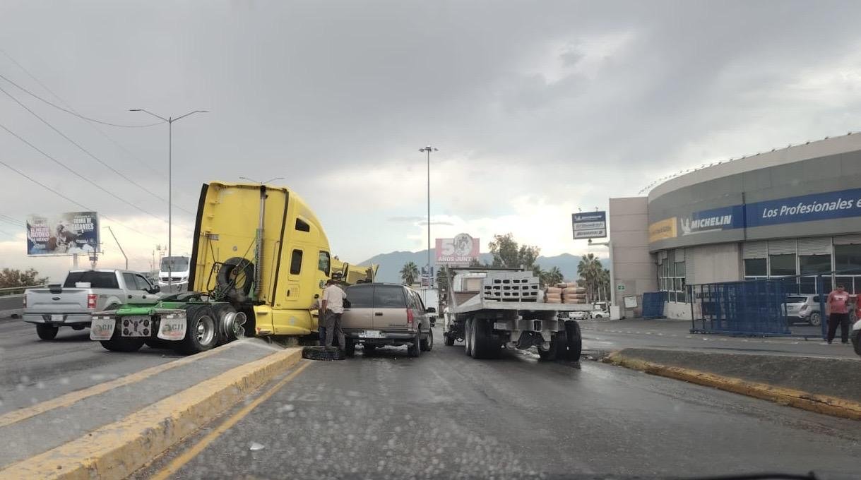 Un tráiler estuvo a punto de provocar una tragedia en pleno periférico Luis Echeverría, a la altura del bulevar Felipe J. Mery, luego de que el cofre de su unidad se abriera de manera repentina y le quitara visibilidad al conductor, en Saltillo.