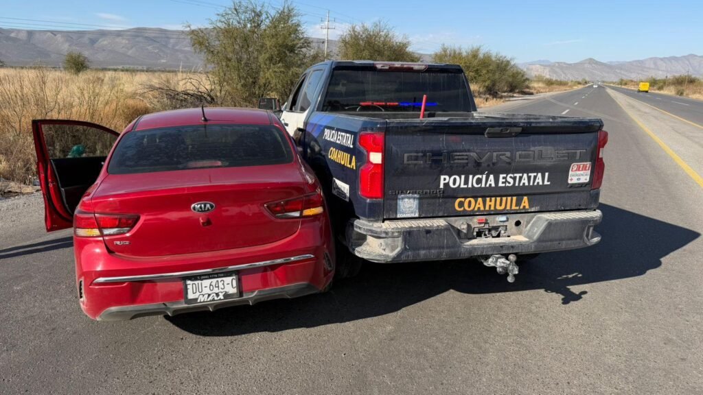 CUATRO CIÉNEGAS, COAH.- Una intensa persecución policiaca registrada sobre la Carretera Federal 30 culminó con el rescate de una joven que presuntamente era llevada contra su voluntad, luego de que elementos del Mando Coordinado de Seguridad Pública de Cuatro Ciénegas interceptaran un vehículo que intentó evadir a las autoridades poniendo en riesgo a otros automovilistas.