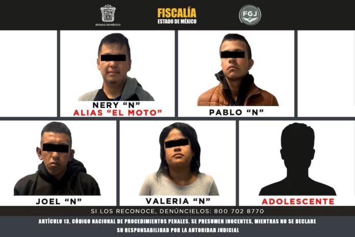 Hasta ese lugar acudieron elementos de la Secretaría de Seguridad del Estado de México (SSEM) y agentes adscritos a la Fiscalía, quienes realizaron acciones de rescate de la víctima y aseguraron a los cinco presuntos responsables. Los detenidos fueron identificados como Nery “N”, Joel “N”, Pablo “N”, Valeria “N” y una adolescente de 15 años de edad.