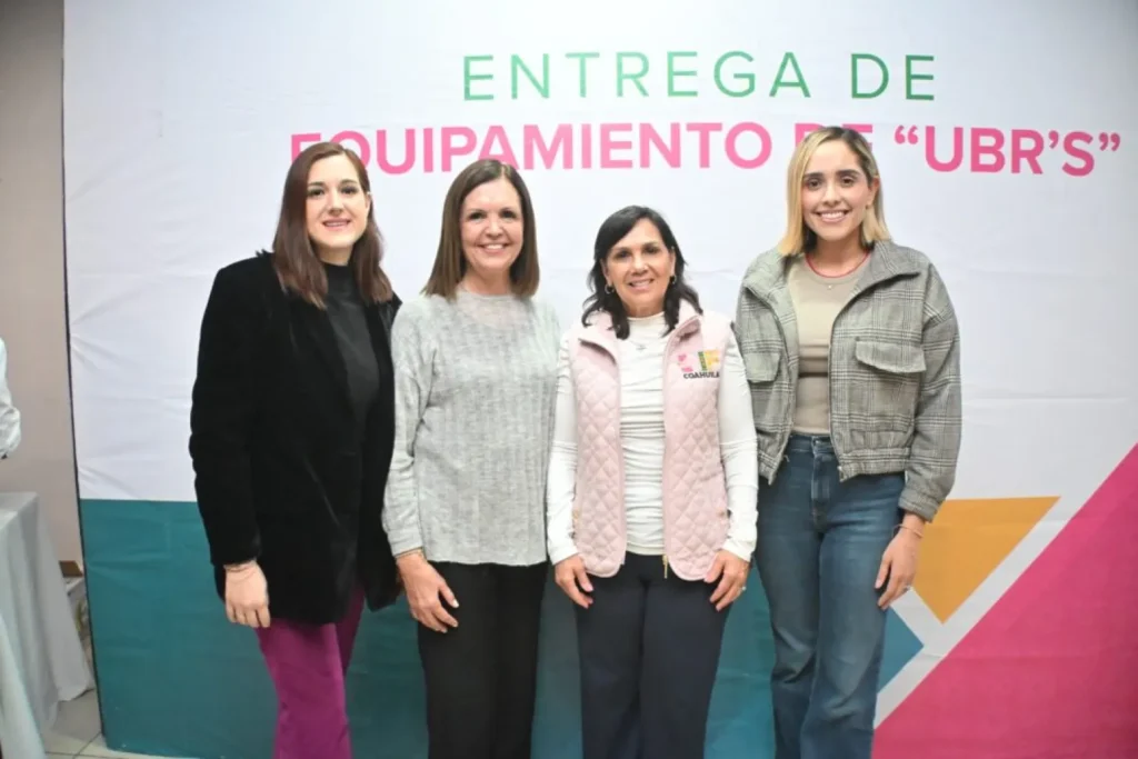 La entrega simbólica de kits de UBR se realizó a través de las presidentas honorarias de los sistemas DIF municipales, beneficiando a los municipios que conforman la Región Centro–Desierto. En este marco, la presidenta honoraria del DIF Frontera, Marifer Martínez Pérez, y la directora del DIF Frontera, Karen Cadena, reconocieron el impacto positivo que este equipamiento tendrá en la atención diaria que se brinda en las unidades de rehabilitación.