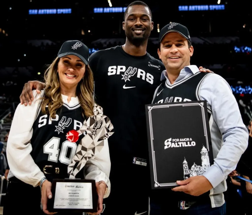 Durante la gira, el alcalde, acompañado por su esposa Luly López Naranjo, presidenta honoraria del DIF Saltillo, entregó un reconocimiento especial al jugador de los San Antonio Spurs, Harrison Barnes. La entrega se realizó durante el medio tiempo del partido entre los Spurs y el Miami Heat.