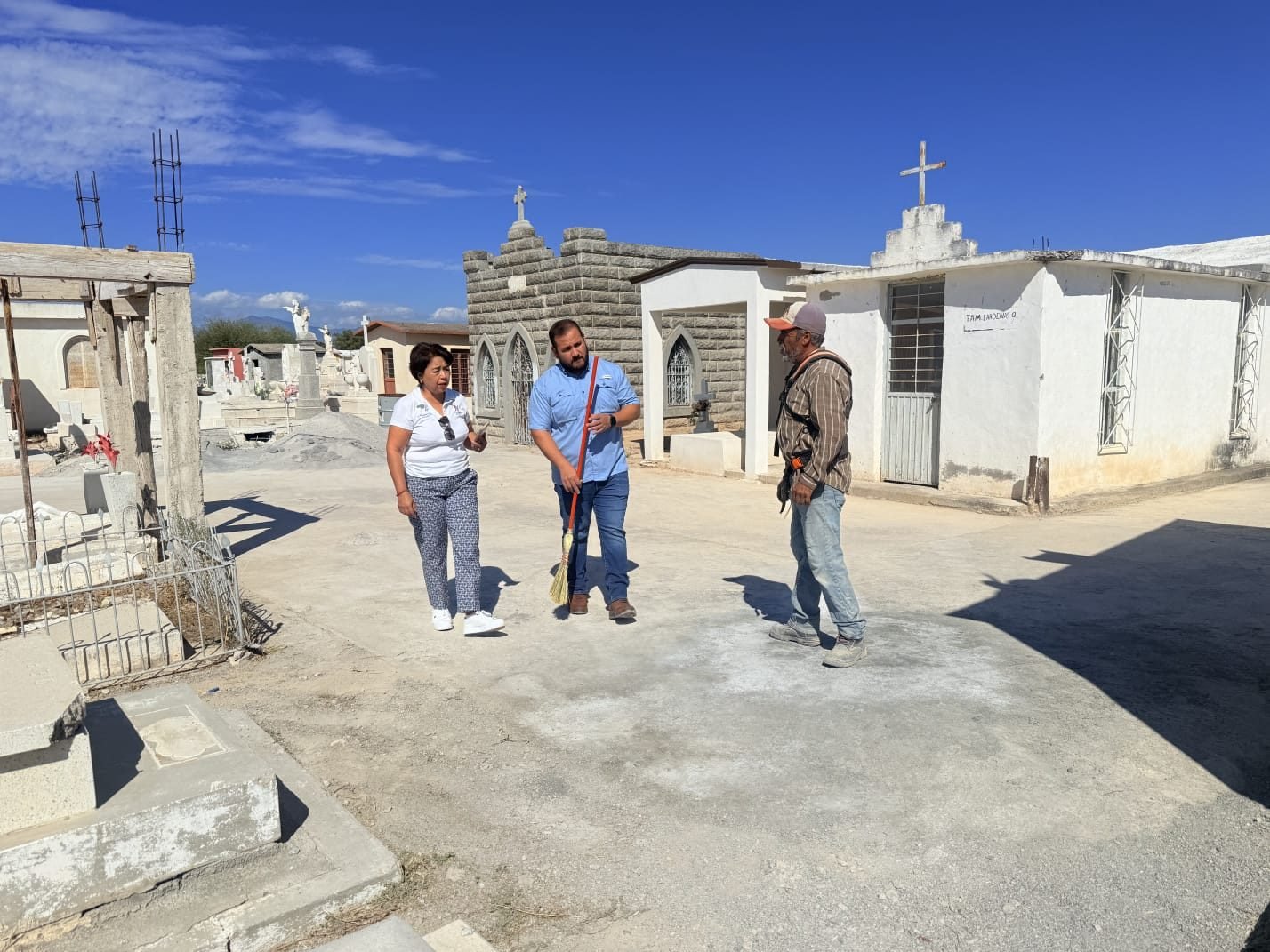 La alcaldesa de Nadadores, Alejandra Huerta Alemán, está liderando los esfuerzos para asegurar que el Panteón Las Victorias esté en condiciones dignas para recibir a los cientos de visitantes durante las próximas celebraciones del Día de Muenos. La presidenta municipal realizó un recorrido de supervisión para constatar los avances de las labores de limpieza y deshierbe, que son fundamentales para esta tradicional fecha.