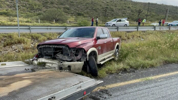 De acuerdo con testigos, debido al pavimento mojado por la lluvia, la camioneta Dodge RAM, perdió el control, salió del camino y descendió al arroyo central. La unidad avanzó varios metros sobre el arroyo, impactó la barrera de contención de la vía contraria y dio un giro, quedando atravesada en medio del cauce.
