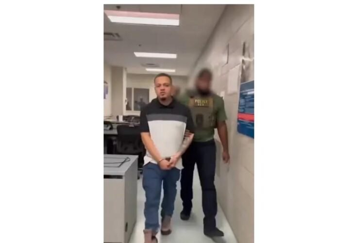 El Departamento de Seguridad Nacional compartió un video de él caminando por la Oficina de Campo de ICE en los momentos posteriores a su detención.